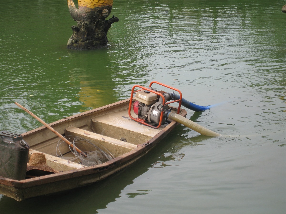 Tough Koshin engine pump is used for sucking up sludge from the bottom of pool.